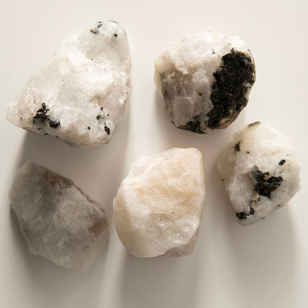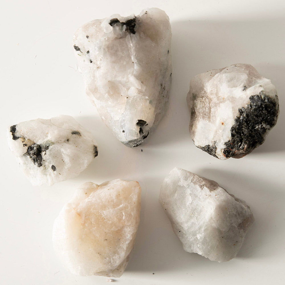 Rainbow Moonstone, an enchanting gemstone of ethereal beauty, captivates with its mesmerizing play of colours. This gem belongs to the feldspar family and is recognized for its milky white appearance, adorned with iridescent flashes that resemble a spectral dance of hues. Rainbow Moonstone holds profound spiritual qualities, making it a cherished gem among crystal enthusiasts and seekers of inner wisdom.