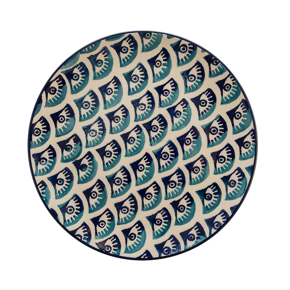 Round Ceramic Plate Evil Eyes Blue 21cm