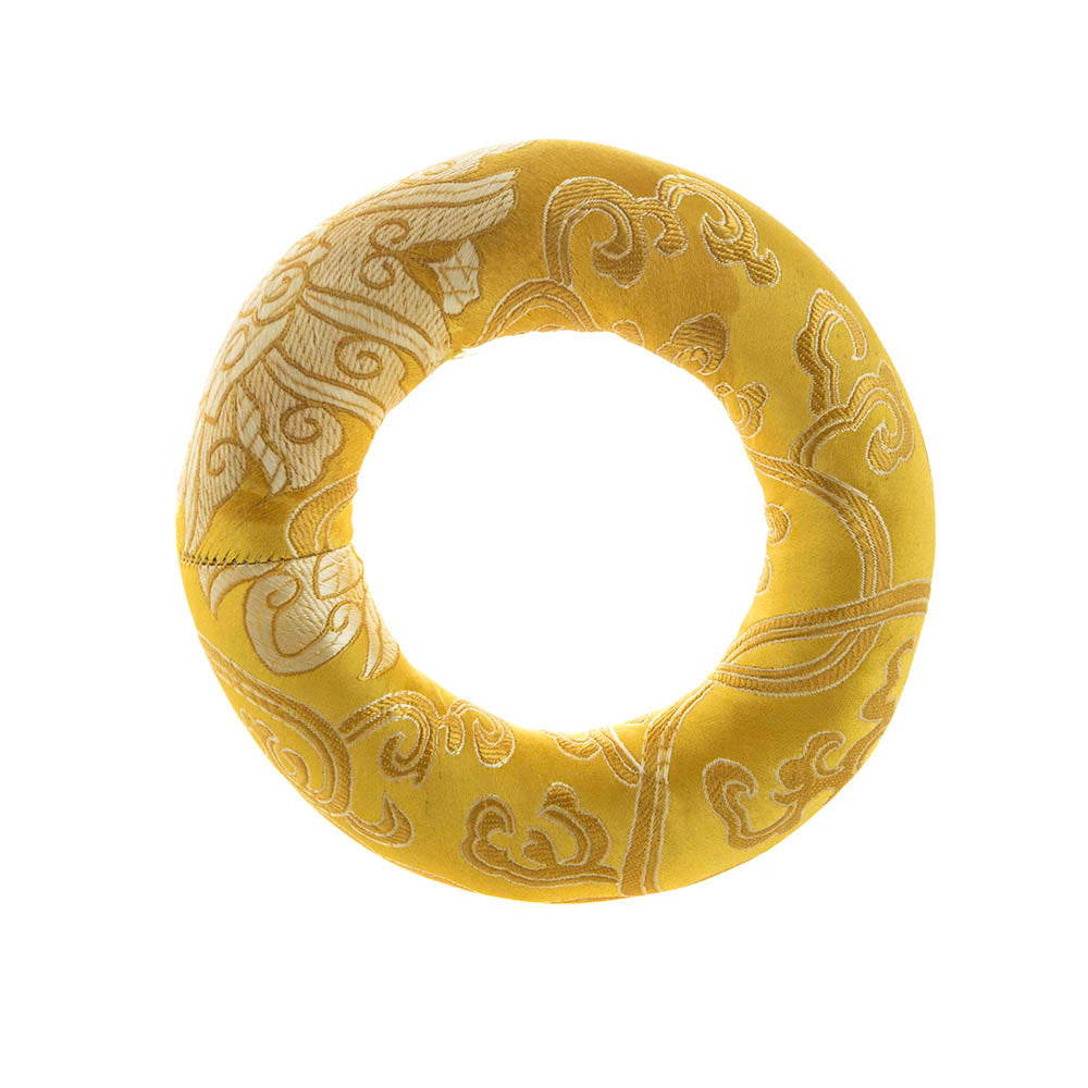 A hard surface will create a dull tone by dampening the sound of your singing bowl. Hence, a softer surface like a cushion is ideal. Using a cushion makes the singing bowl more accessible and helps it produce even tones.