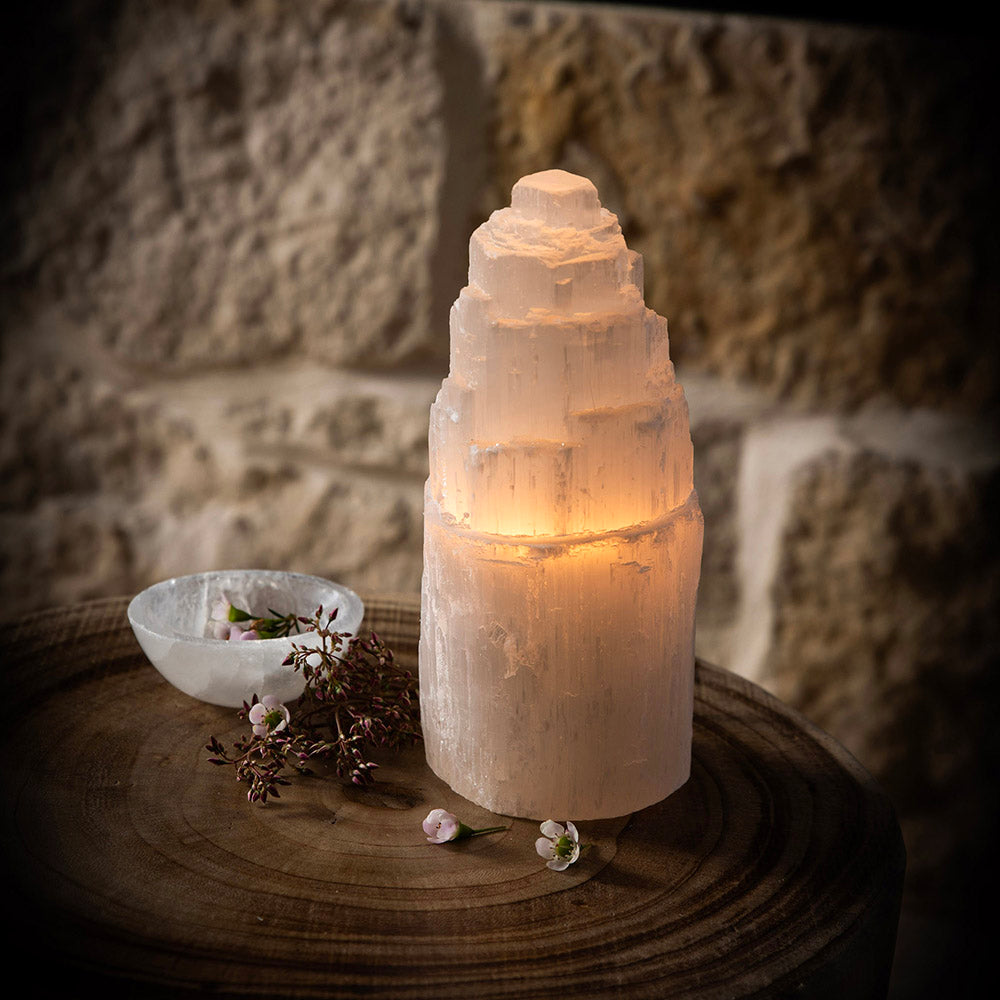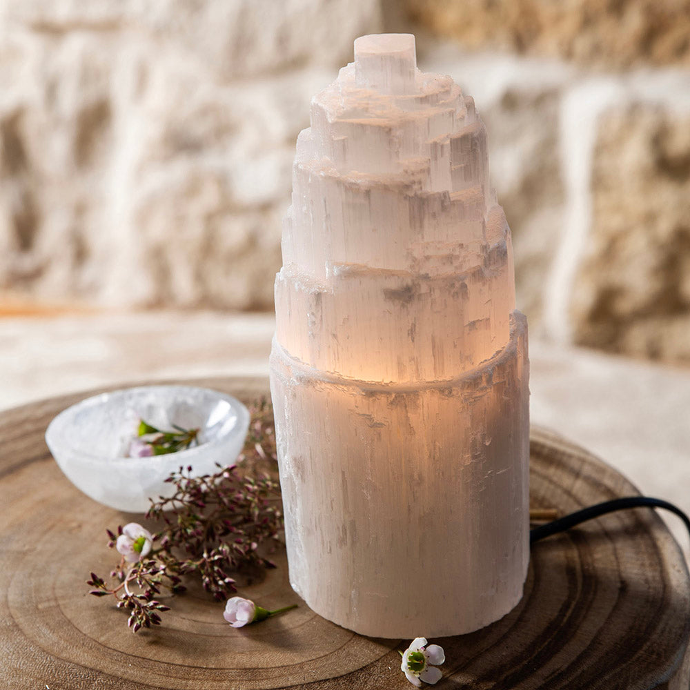 A beacon of serene elegance for your living space. Each lamp is crafted from the purest selenite crystals, radiating a soft, ethereal glow. Known for its calming properties, selenite is believed to bring tranquility and mental clarity. Illuminate your surroundings with this enchanting lamp, creating a peaceful ambiance while adding a touch of natural beauty to your décor. Elevate your space with the timeless allure and soothing radiance of our Selenite Lamp – a harmonious blend of aesthetic charm and holistic well-being.