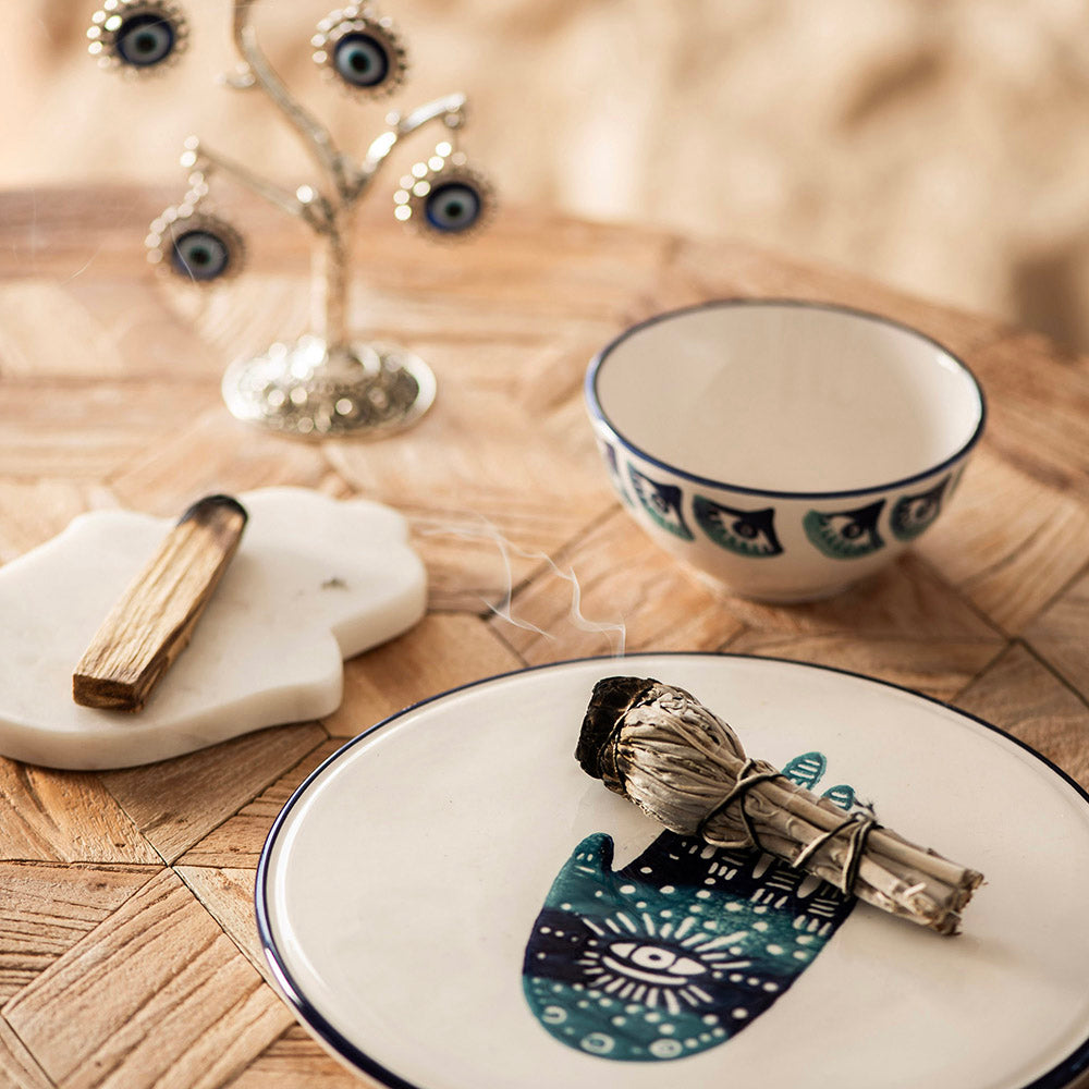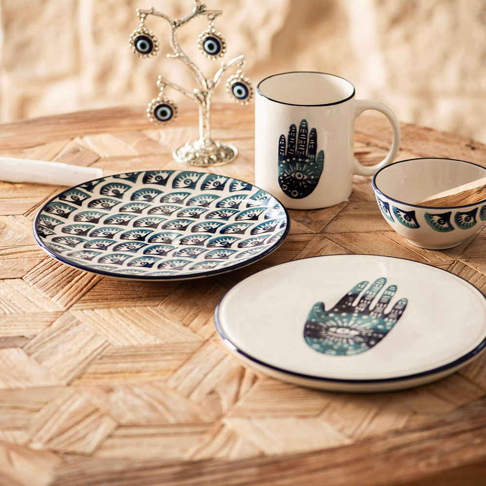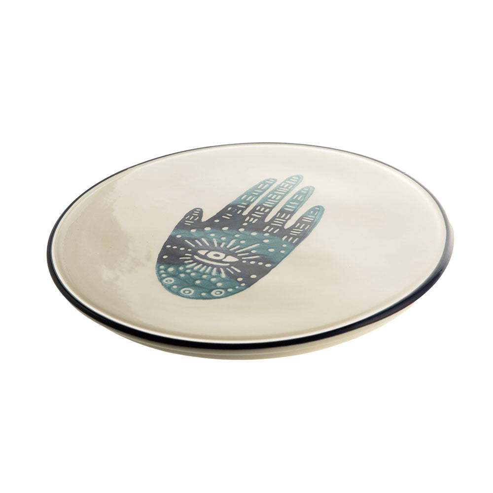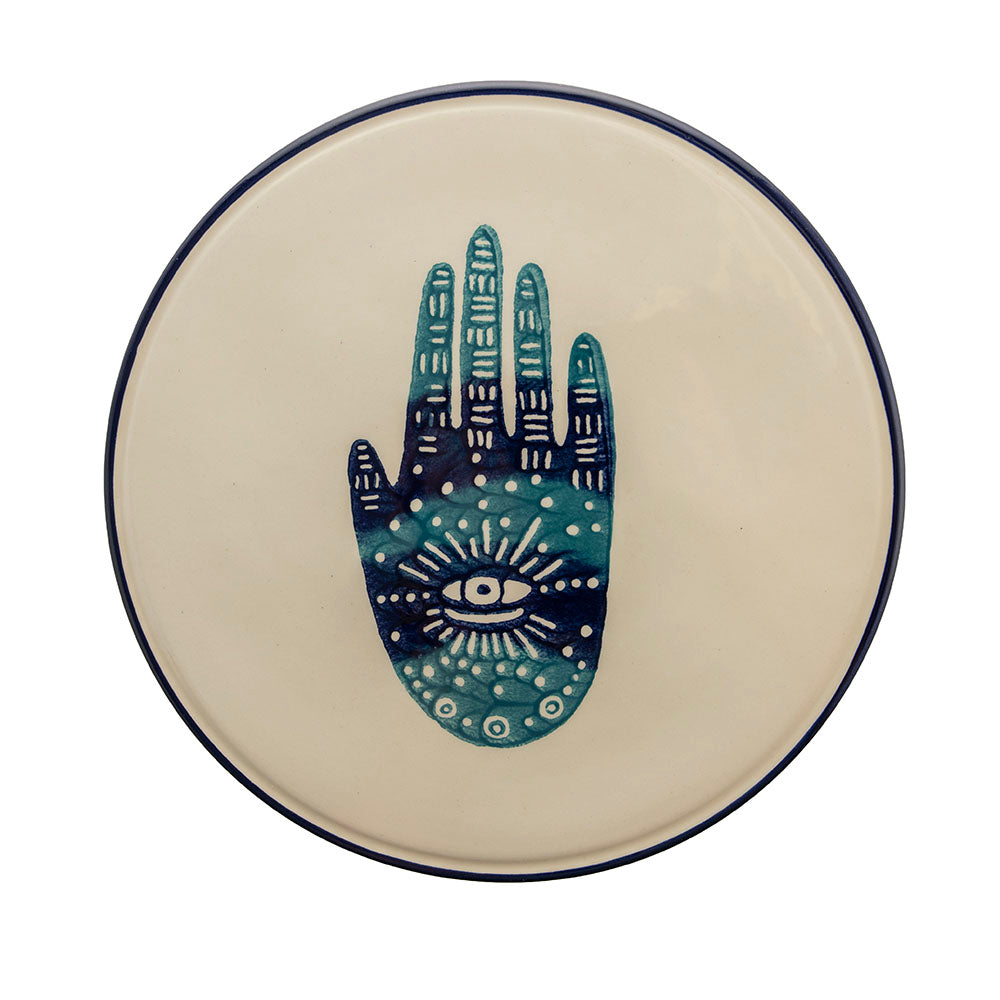 Round Flat Ceramic Plate Evil Eye Hamsa Dark Blue 21cm